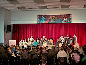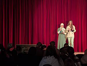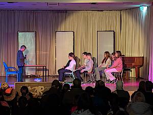 | Ein gelungener Auftritt | Das Moderatorinnen Team | Theaterstück zu den Schulregeln |
